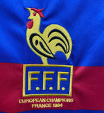 Unit price perThe 1984 France home shirt is one of the most celebrated kits in football history, symbolizing the year Les Bleus captured their first major international trophy. Designed by Adidas, this jersey features a sleek royal blue design with subtle red and white stripes on the collar and sleeves, reflecting the colors of the French flag. The embroidered FFF crest and classic three stripes on the shoulders add a timeless elegance, making it a standout piece in football fashion.